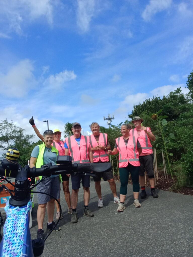 Love Your Path is a community driven initiative to help look after local paths. Roger organises a group which maintains a shared path, the section of Te Ara ki Uta Ki Tai between Glen Innes and St Johns. It is a lovely wide path, originally planted with native trees, harakeke, shrubs and grasses. It was neglected over time, and noxious weeds invaded the plantings, with only occasional efforts to weed and remove litter and rubbish. After the floods of 2023, large amounts of gravel swept over the path, and a few individuals got together, and a maintenance group was formed. The first ‘Love Your Path’ event was delivered in June 2024, it was a big success, and now Roger co-ordinates about ten or more people to meet once a month to help keep the path clear of debris and to plant, maintain and water the vegetation. Recently, a gift of sunflowers added a joyful touch. They make a huge contribution, improving the amenity in our neighbourhood, and showing love and care for the environment.
