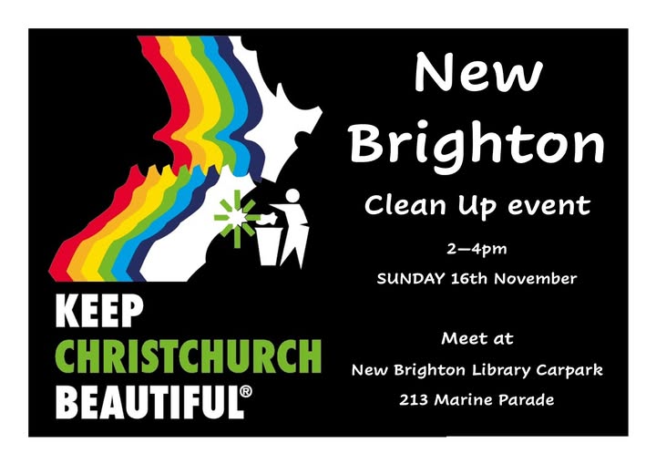 16 November 2025 @ 2:00 pm - 4:00 pm NEW BRIGHTON CLEAN UP EVENT New Brighton Library 213 Marine Parage, New Brighton, New Zealand