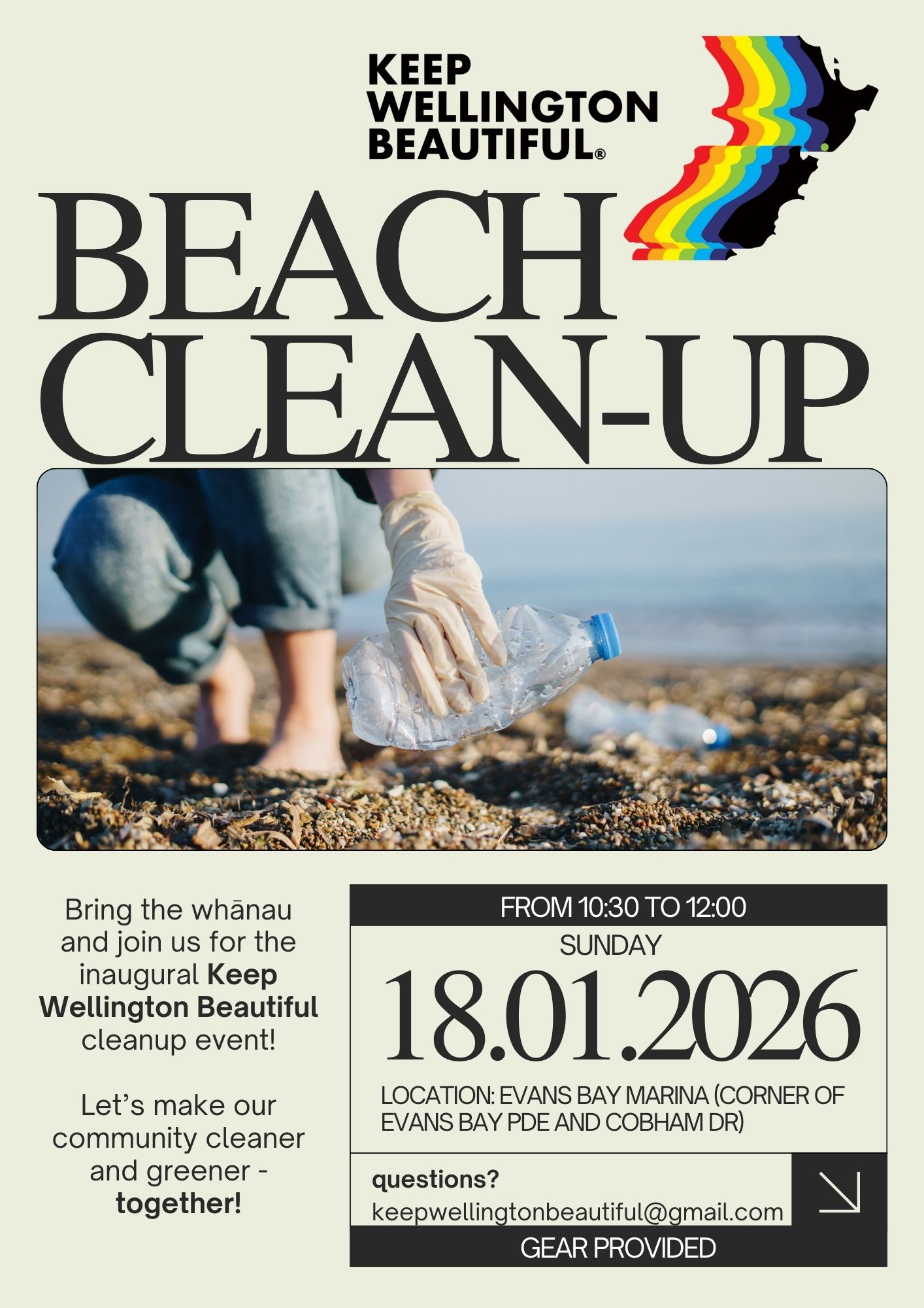 January 18 @ 10:30 am - 12:00 pm EVANS BAY CLEAN UP Evans Bay Marina 517 Evans Bay Parade, Wellington, New Zealand